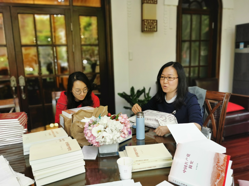 图为张泓老师结合编剧作品《织梦人》,分享党史学习心得