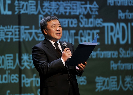 7月5日晚,第20届人类表演学国际大会(Performance Studies International Conference 20)于上海戏剧学院正式拉开帷幕。国际人类表演学会主席Maaike Bleeker、联合国教科文组织—国际剧协会长Tobias Biancone、上海市教委副主任李瑞阳、静安区副区长邓小东等嘉宾莅临开幕式现场并分别致辞。上海戏剧学院党委书记楼巍,院长韩生,副院长宫宝荣、郭宇,人类表演学教授孙惠柱等领导和老师出席。楼巍书记代表上海戏剧学院向大会致欢迎辞。开幕式由韩生院长主持。