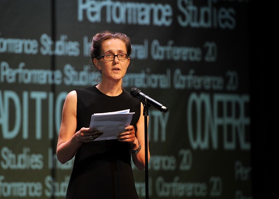 图为国际人类表演学会主席Maaike Bleeker致辞
