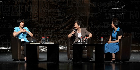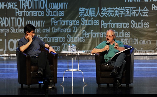 图为美国谢克纳教授和我校孙惠柱教授进行主旨对话