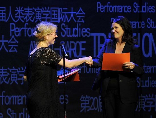 7月8日晚,第20届人类表演学国际大会(Performance Studies International Conference 20)经过国内外与会者4天正式会议的热烈讨论和交流展示,于上海戏剧学院上戏剧院圆满落幕。我校副院长宫宝荣、郭宇和孙惠柱教授与全体代表一起出席闭幕式。国际人类表演学会主席Maaike Bleeker女士主持闭幕式仪式并在会上向获得论文交流等活动奖项的代表颁发证书。