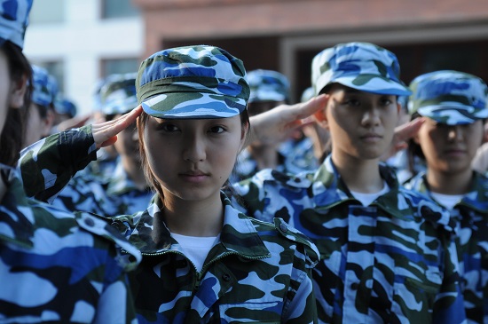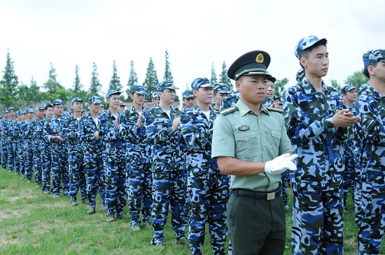 图为军训敬礼训练