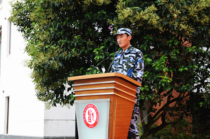 优秀学员代表张艺腾同学作为优秀学员上台发言,他与大家共同分享了9天军训生活的酸甜苦辣,轻松诙谐的语言中流露出一丝留恋和一股对未来生活充满信心的勇气。最后,党委副书记胡敏发表讲话,她首先肯定了同学们9天的受训成果,并鼓励同学们能够把正直、忠诚、奉献这些优良的素质和品格,一直延续下去,并在追求艺术理想的道路上勇往直前。
