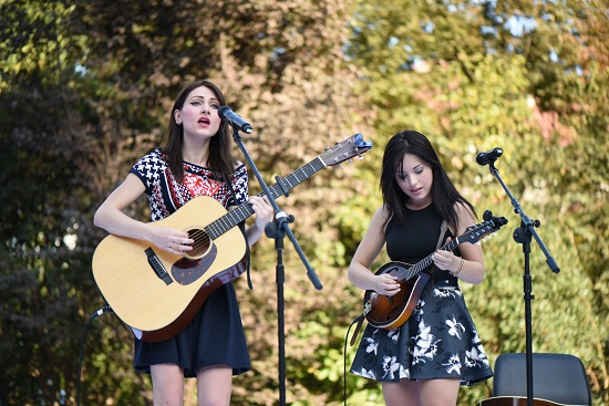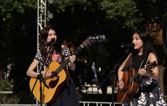 我循声来到红楼前的大草坪,原来是来自加拿大的克芒德姐妹开始了她们的表演。姐妹俩拿着她们的吉他,边弹边唱。我在大草坪上随意找了个位置坐下,静静地看着她们的表演。沐浴在初秋并不激烈的阳光下,克芒德姐妹们那带着些许慵懒又不乏俏皮的歌声仿佛有一股魔力,让我很快地沉醉其中。她们的表演不像摇滚那么热烈,带着乡村民谣的味道,自然随心的旋律打动了台下的听众..淡淡的感觉带着简洁和清新的味道,细腻的吉他,抒情的歌词,让人感觉轻松而舒适,配上暖暖的阳光,让人仿佛置身于静谧美好的村庄,所有的浮躁慢慢散去。歌曲一首接着一首,姐妹俩还时不时和台下的观众互动,表达着她们来到上戏表演的激动。克芒德姐妹的演唱获得了台下观众的阵阵掌声,她们的表演也更加精彩。