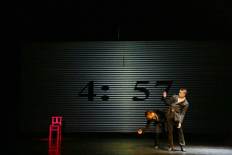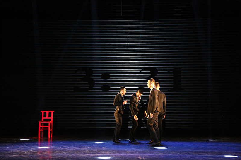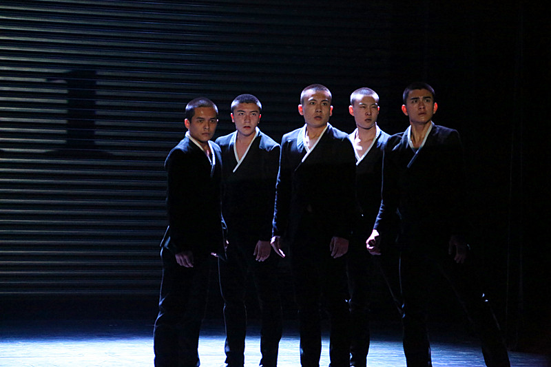 舞台上五个演员如出一辙的装扮,让人分不清他和他,五个人似乎被忽略了作为个体的存在。舞蹈开始他们整齐划一的行走,背后屏幕上是静止的10:00,他们既是个体又是整体。时间流动了,一秒一秒的消逝,音乐平缓铺开,舞者的动作表现着单独个体开始思考,动作各异,没有重叠。从静止到行动,就在忽然间,独立的存在着,牵引这观众做出自己的判断和思考。