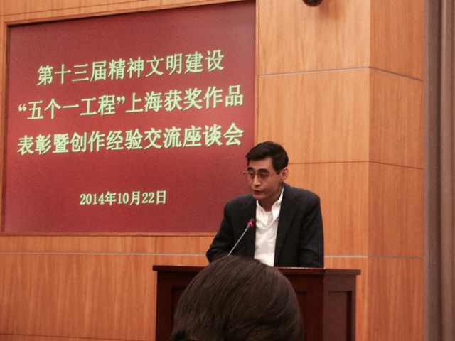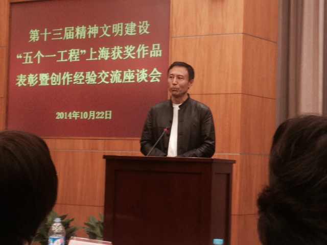 10月22日,上海市委宣传部召开第十三届精神文明建设“五个一工程”上海获奖作品表彰暨创作经验交流座谈会。我校音乐剧中心主任王洛勇和导演系校友傅东育作为获奖代表在会上发言。王洛勇主演的电视剧《焦裕禄》和傅东育导演的《西藏天空》均荣获第十三届精神文明建设“五个一工程”奖。(文、编辑:榕树)
