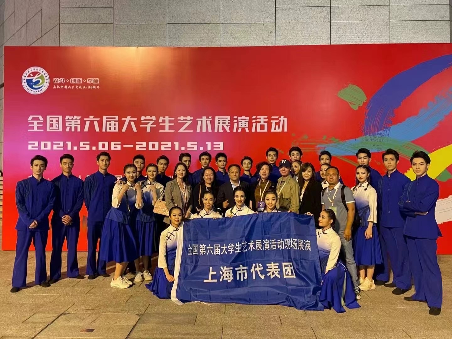以“奋斗•创新•奉献“为主题的全国第六届大学生艺术展演活动现场展演于2021年5月6日至13日在成都市举办。本次活动由教育部和四川省人民政府共同主办,上海市共有来自13所高校的16个艺术表演类节目和4个大学生艺术实践工作坊参与现场展演。经过层层选拔,舞蹈学院原创作品《茉莉芬芳》成功入围现场展演,并应邀参加开幕式演出。
