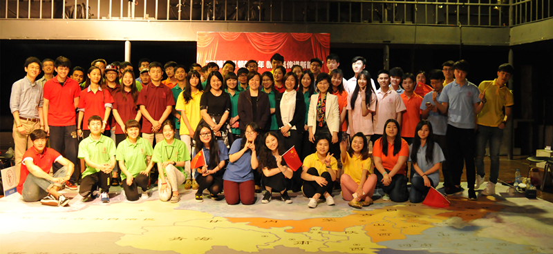 活动分为“传承五四精神”、“分享价值感悟”、“汇聚博爱精神”三个环节依次进行。在“传承五四精神”环节中,来自各院系的同学站在巨幅的祖国版图之上,将鲜红的五星红旗和党旗从首都北京开始顺时针传递,一直传到上海结束,在传递过程中,每一位同学手捧旗帜,大声地喊出自己的名字、院系和青春格言,伴着激昂奋进的校歌音乐,每一句青春格言都包含哲理,充满正能量。