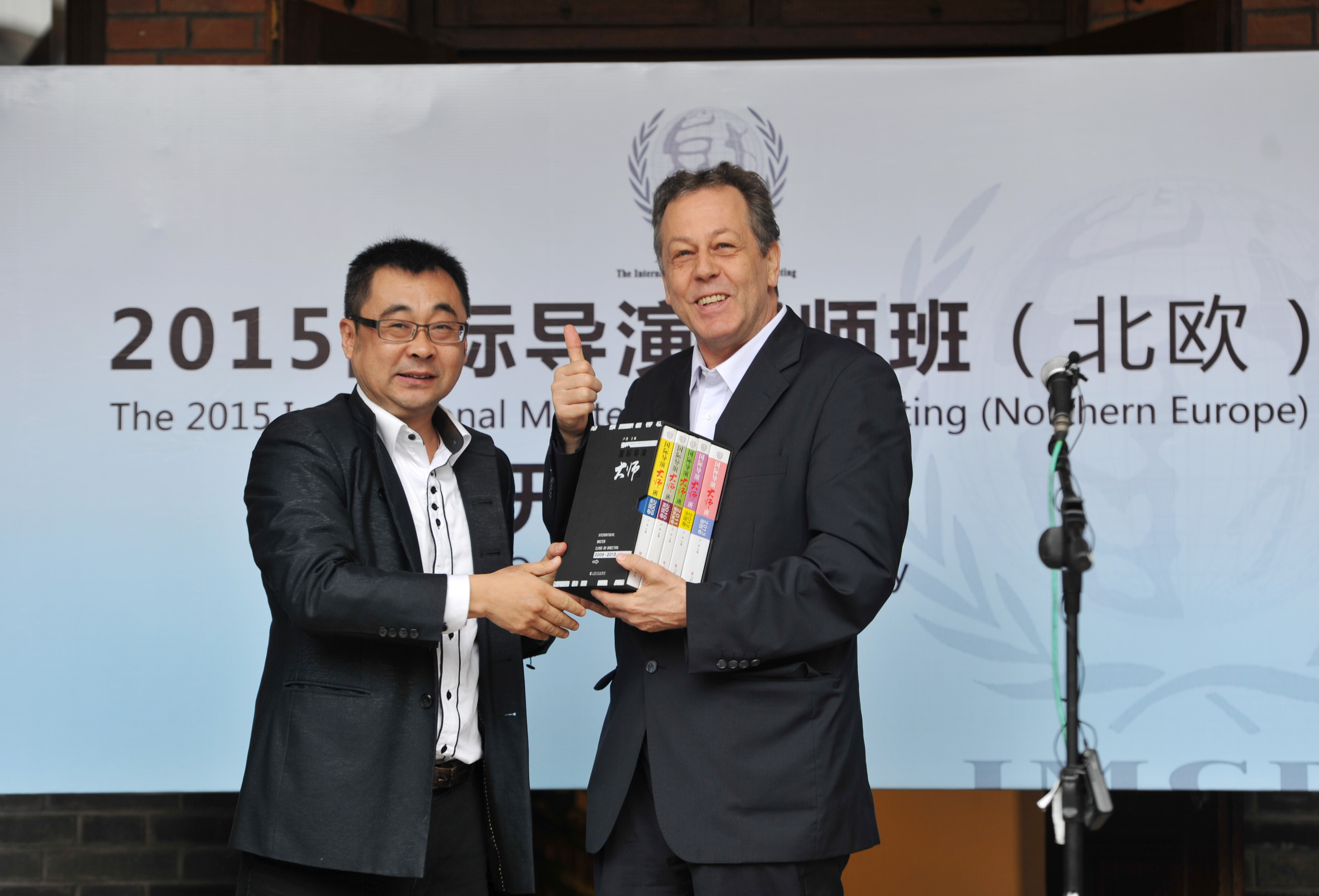 卢昂教授将上戏六年来不同国家包括美国、俄罗斯、英国、法国、德国、大洋洲大师班的科研成果著作以书本的形式赠送给了国际剧协总干事托比亚斯先生,此环节将开班仪式推向了高潮。托比亚斯先生在发言中特别强调世界戏剧文化的多样性,并突出说明了导演在戏剧艺术中的主导地位,最后他表示了对大师班项目的大力支持,期待以后与上戏继续有更多的合作。