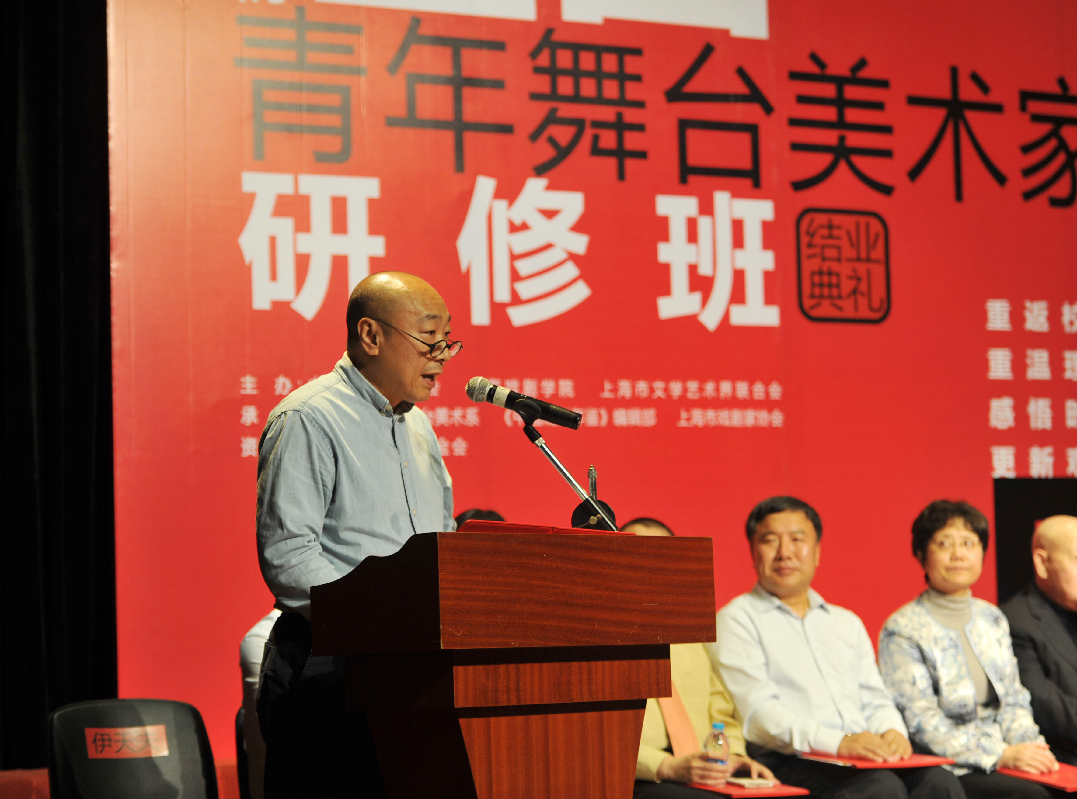图为尹天夫在中国剧协全国舞台美术家研修班结业典礼上发言