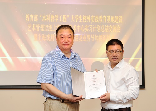 6月23日,上海话剧艺术中心总经理杨绍林先生客座教授聘任仪式在上戏佛西楼二楼会议室隆重举行。教育部“本科教学工程”大学生校外实践教育基地艺术管理12级上海话剧艺术中心实习计划总结交流会暨业界导师授证仪式也在此举行。