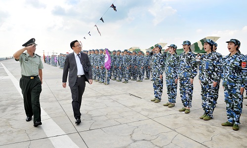图为楼巍书记检阅受训连队