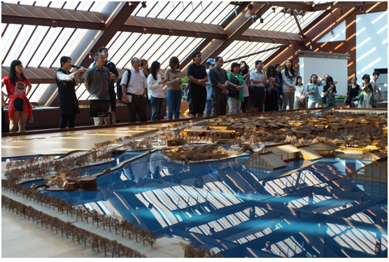 17日早上来到松江后,上戏师生一行用一个小时的时间首先走访了广富林。坐落在水中的遗址公园,记录了松江四千年前的环境风貌,穿行于博物馆,在知也禅寺听钟,浓郁的地方文明和厚重的历史气息,让师生们第一时间了解了人杰地灵的美丽松江。