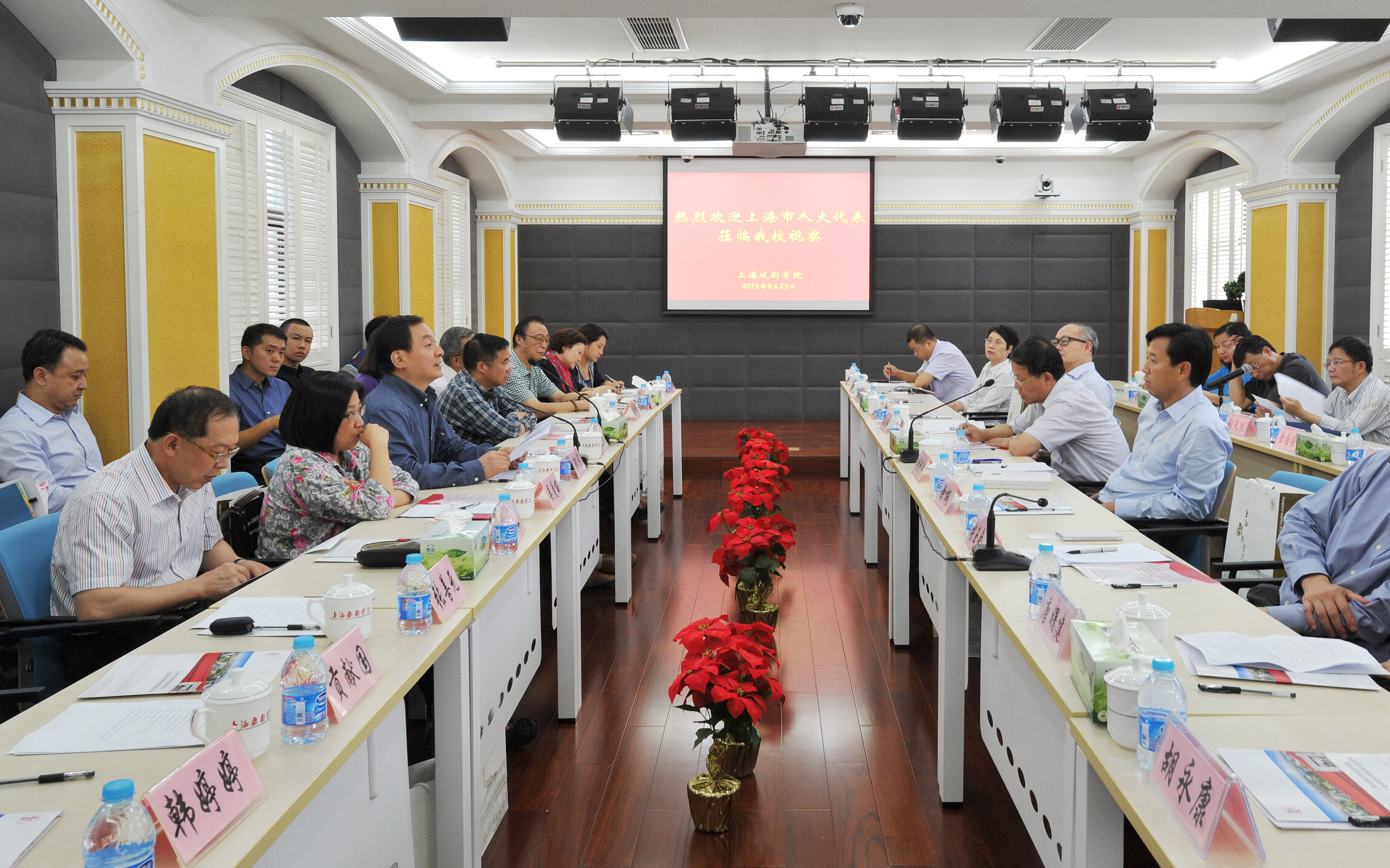 9月25日下午,闵行区市人大代表一行近30人在闵行区人大常委党组书记、主任张路加,闵行区委副书记、区长赵祝平带领下,来我校莲花路校区进行调研,我校党委书记楼巍、副院长郭宇在调研活动中亲切会见了与会代表。本次活动主要是围绕文化体制改革、综合教育改革等问题调研我校戏曲教育改革的推进工作,市人大代表与我校校领导,以及戏曲学院、戏曲学校的相关领导和教师代表进行互动交流。