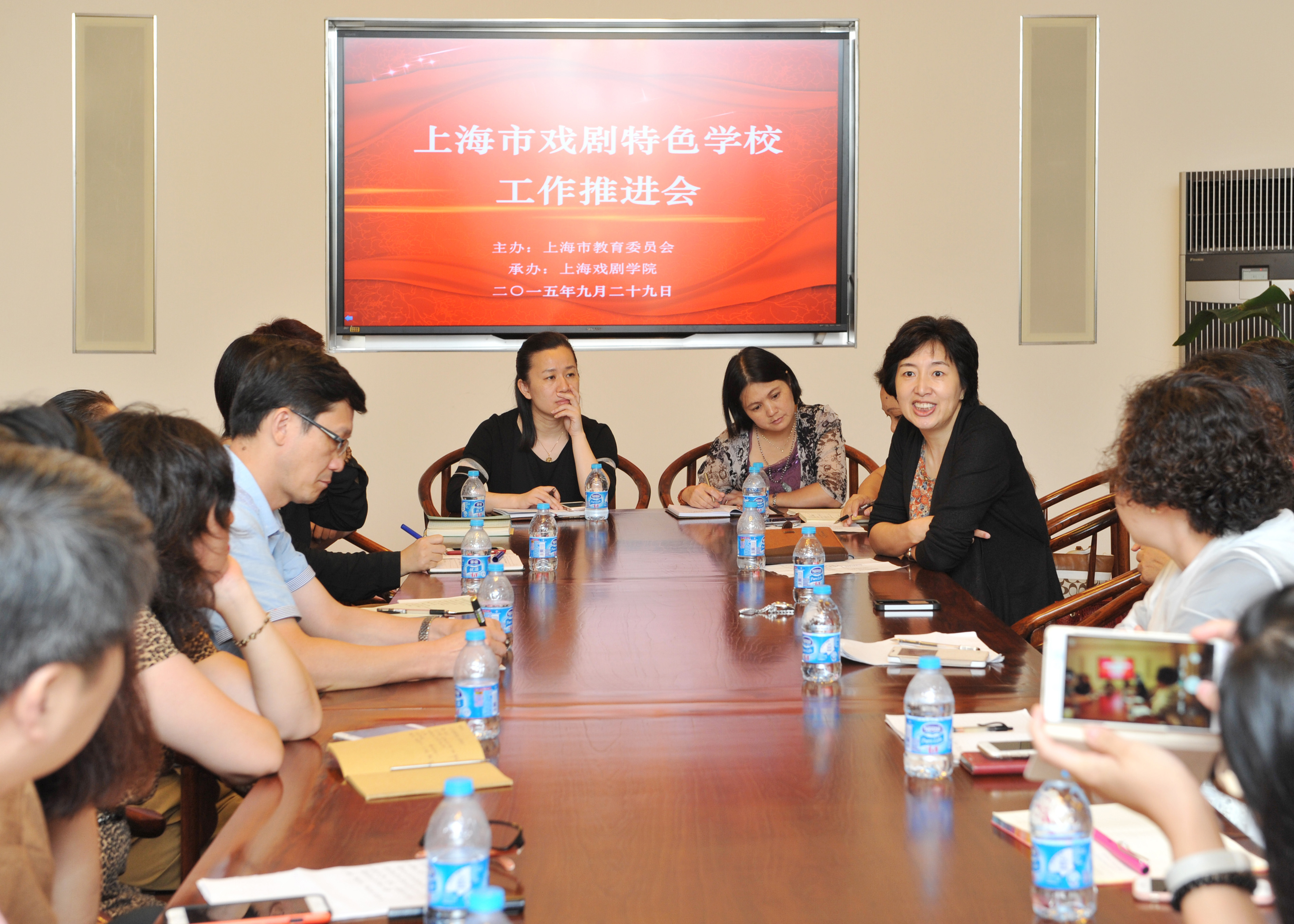 9月15日,国务院办公厅发布了关于全面加强和改进学校美育工作的意见,提出普通高中在现有基础上要创造条件开设戏剧课程。为了进一步贯彻全国艺术教育工作会议精神,推动学生素质教育工作深入、持久和有效的开展,9月29日下午,由市教委体卫艺科处牵头的“上海市戏剧特色学校工作推进会”在佛西楼二楼会议室召开。上海市教委体卫艺科处副处长赵靖茹、我校宣传部部长张生泉和来自全市17个区县教育局的相关领导以及重点中学校长出席了此次会议。会议由市教委体卫艺科处蒋萍芳老师主持。