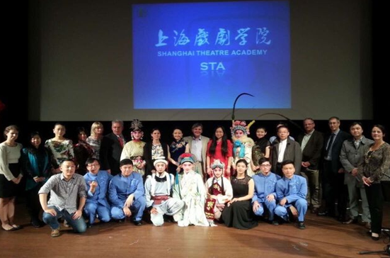 当晚的演出场地并非正规的剧场,但由于谢大孔院事前做了精心准备和周密计划,使得演出得以顺利进行并且效果很好。能容纳三百多观众的座席上挤满了观众,甚至还有拄着拐杖的残障人士。他们聚精会神,全神贯注的注视看台上演员的一举一动,不时为演员们精彩的表演爆发出一阵阵热烈的掌声,他们惊叹于《天女散花》中演员何以能仅靠两臂就能将长约数米的彩练舞得上下翻飞,他们更被《借扇》中那孙悟空钻入铁扇公主肚子里那出神入化的写意描写而感佩和折服。“中国戏曲太神奇了!”“你们的戏剧太有想象力了!”“very good!”这是散场时观众发出最多的赞叹。许多观众踊跃的要求与演员合影留念。并在散场后久久不愿离去。中方和外方两位孔院院长异口同声对展演团的领导说:“你们为谢大校园美丽的夜景又增添一道亮点。我们期盼你们下次再来!”当得知巡演团第二天又要启程赶往下一个城市,两位院长都感叹地说:“你们在谢菲尔德停留的时间实在是太短了!不然我们还可以深入地谈谈,你们也可以深入到我们的教学课堂里,给我们这儿热爱古筝演奏和戏曲表演的学生们上上课,让他们好好领略一下来自中国上海的戏剧专家们的真传。”
