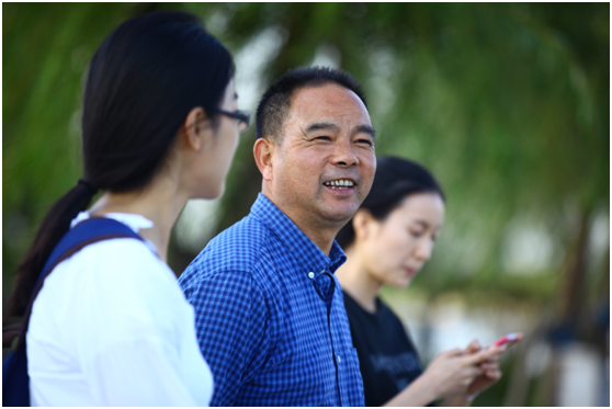 简单的工作午餐后,学生们分12个组,走访了新浜镇、石湖荡、叶榭、泖港四个镇所属的12个家庭农场,新旧老乡热情接待了大家。有了上一次的接触和经验,学生们的提问更加从容有深度,农场主也开始畅所欲言,从农场经营状况聊到各自家庭生活,彼此间的对话更加轻松,也更为细致。在愉快的交谈中,学生们收获的不仅仅是故事素材,更是一种与不同领域进行沟通采访能力的修炼。