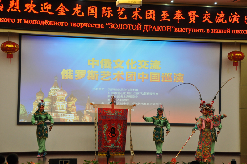 11月7日下午,一场盛大的中俄文化艺术交流中国巡演活动(奉贤区)在实验中学贝港校区顺利举行,来自俄罗斯金龙文化艺术团、北京红领巾56朵花艺术团和上海各艺术院校、团体及实验中学的小演员们参与了本次交流演出。本次活动由俄罗斯联邦驻沪总领事馆、红领巾爱心助力团公益行动管理委员会、新华小记者上海组委会、奉贤区人民政府、奉贤区团区委等主办,实验中学、成长快乐教育培训学校协办。