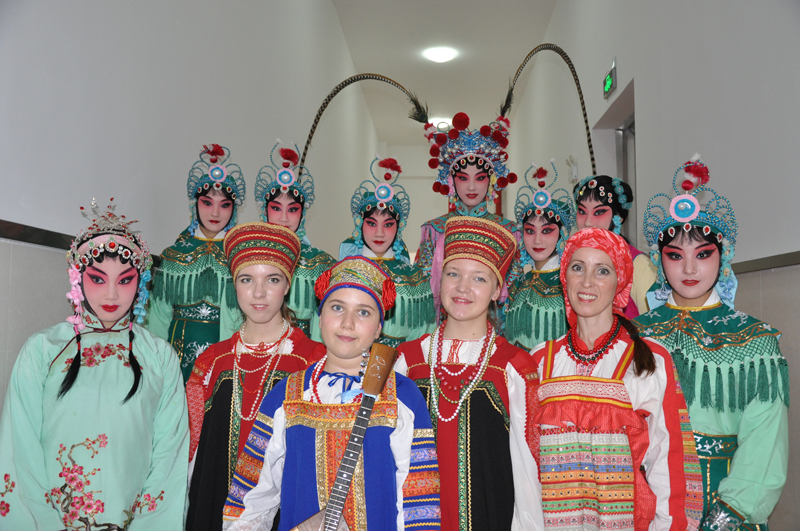 图为中俄演员合影