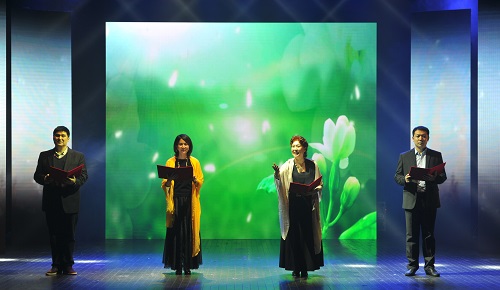 为全面贯彻落实党的十八大精神,大力倡导全民学习、终身学习的价值理念,2015年11月7日下午,静安区学习节暨首届市民诗歌节开幕式活动在我校端钧剧场举行。本次开幕式活动由静安区学习型城区建设与终身教育促进委员会、上海戏剧学院主办,静安区学促办、静安区语委办、静安区区域化党建联席会议教育宣传专委会联合承办。我校党委副书记胡敏出席了本次开幕式。