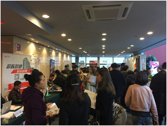 上海戏剧学院2016届毕业生就业推介会秋季场于11月24日下午2点在上戏剧院举行,本次推介会由招就办主办,邀请到上海电影艺术职业学院、上海国际主题乐园有限公司(上海迪士尼度假区)、星空华文国际传媒有限公司、浙江华策影视股份有限公司、黑龙江广播电视台、湖南电视台潇湘电影频道、上海耀客传媒股份有限公司、上海炫动传播股份有限公司、上海幻维数码创意科技有限公司、上海市静安区青少年活动中心、上海市黄浦区青少年艺术活动中心、上海市虹口区青少年活动中心、上海文化广场剧院管理有限公司、上海音乐厅、上海木偶剧团有限公司、上海市嘉定区文化馆、上海开心麻花文化传媒有限公司、宋城演艺发展股份有限公司、上海歌剧院等近80家用人单位到学校设摊招聘,用人单位涉及电视台传媒公司、专业院团、文化影视公司、学校、剧院、文化馆等各领域,拟招聘人数超过700人,需求专业涉及主持、编导、灯光、舞美、戏文、表演、导演、舞蹈、戏表、创意等各专业。参加本次招聘会的用人单位中也有我校所有校友创业的公司前来纳才的,比如上海市骑鲸客文化传播有限公司、上海兆瞬文化艺术有限公司等,形成了创业带动就业的良性循环。此次推介会历时2个小时,党委副书记胡敏专门到推介会现场,了解到会的用人单位情况和招聘情况。