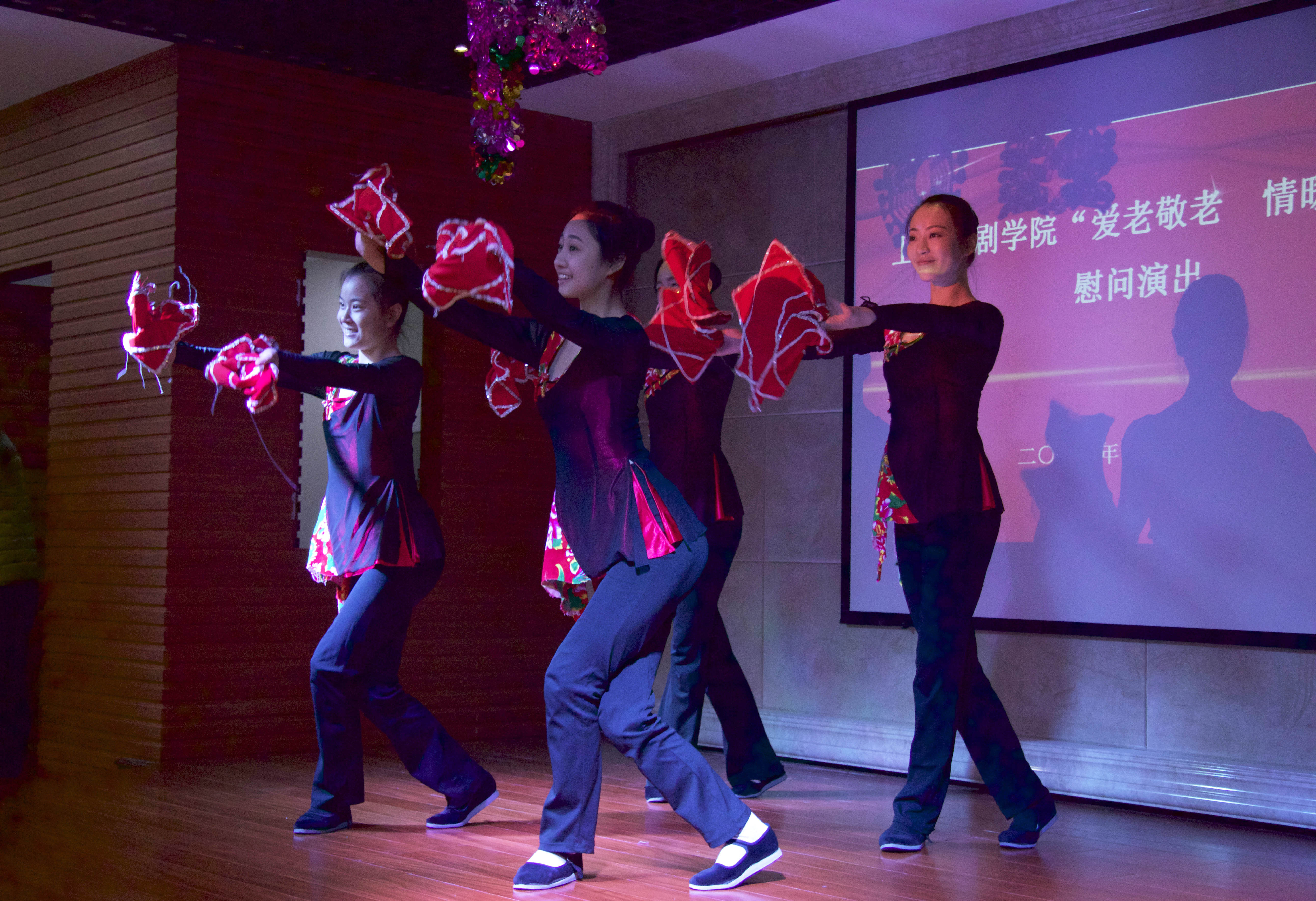 同学们的到来像冬日里的阳光,给爷爷奶奶们带去了丝丝温暖。时长一个小时的节目集合了歌曲、舞蹈、相声、戏曲、木偶等多种艺术形式。表演系薛光磊老师和14级表演系王威同学表演的相声《智取威虎山》获得了爷爷奶奶的满堂喝彩;越剧《碧玉簪·手心手背都是肉》、《沙漠王子·算命》和京剧《西施》让爷爷奶奶听得如痴如醉;《我只在乎你》、《张三的歌》、《小城故事》等经典老歌则将爷爷奶奶们带回到年轻时的青葱岁月;《秦王点兵》、《赤壁赋》等舞蹈让现场的气氛不断升温;戏曲学院邓欣欣同学带来的木偶表演《长绸舞》展现出精湛的表演技巧,博得现场的阵阵掌声,将演出活动的气氛推向了高潮,演出在欢乐明快的舞蹈《大姑娘美》的热闹氛围中落下帷幕。