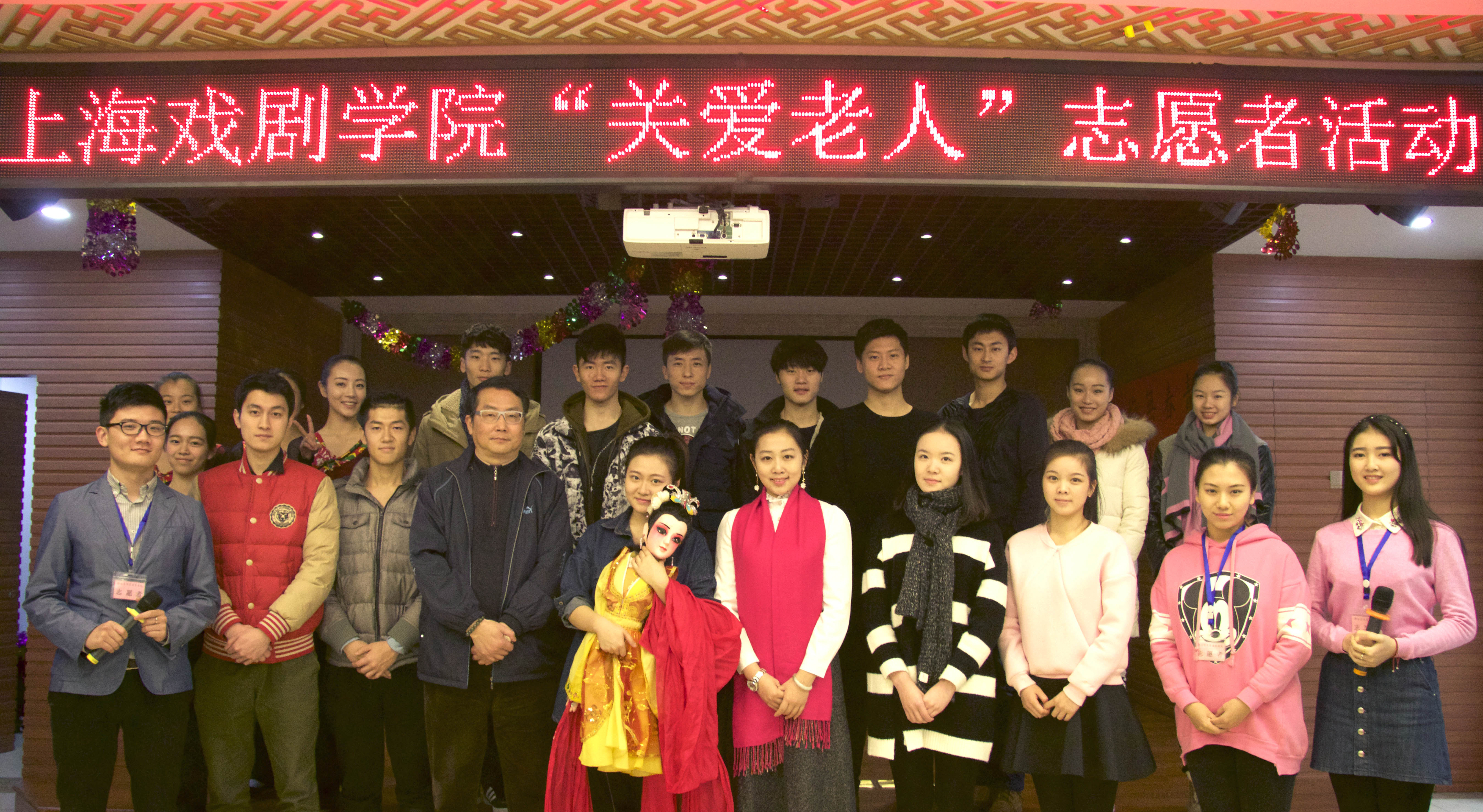 2016年新年即将到来之际,由学工部、团委组织的各院系学生志愿者在12月27日上午来到静安区日月星养老院进行慰问演出,用精彩的文艺节目向老人们表达了新年祝福。