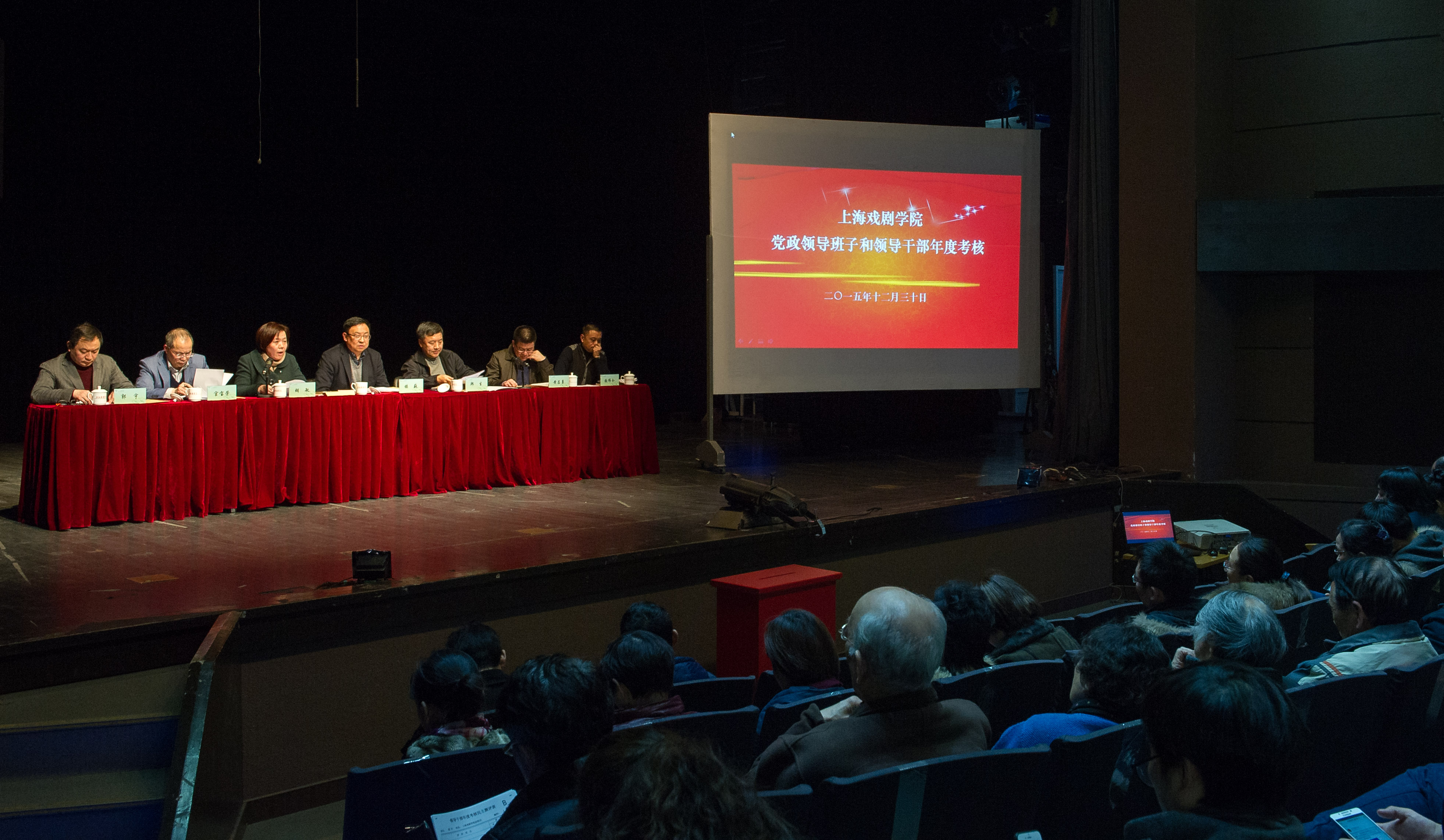 2015年12月30日下午,我校党政领导班子和领导干部年度考核民主测评会在端钧剧场召开,学校两位委员、中层干部、党代会代表、教代会代表、教授和职工代表、民主党派代表、离退休代表等150余人参加了会议。会议由党委书记楼巍同志主持。