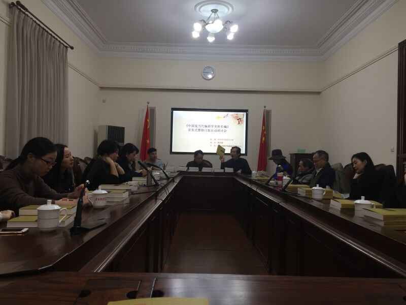 2016年1月9日下午,《中国现当代编剧学史料长编》首发式暨修订版启动研讨会在上海戏剧学院佛西楼成功举行。参加此次会议的有本书主编陆军教授,副主编张福海教授,李世涛博士,有编剧学资深教授姚扣根、孙祖平、沈炜元等多位老师,还有专程赶来参加会议的本书责任编辑、中国戏剧出版社编审龚伟民先生,《上海戏剧》主编张文军先生,以及共同参与本书编纂的相关师生和编剧学博士后、博士生、硕士生三十余人。
