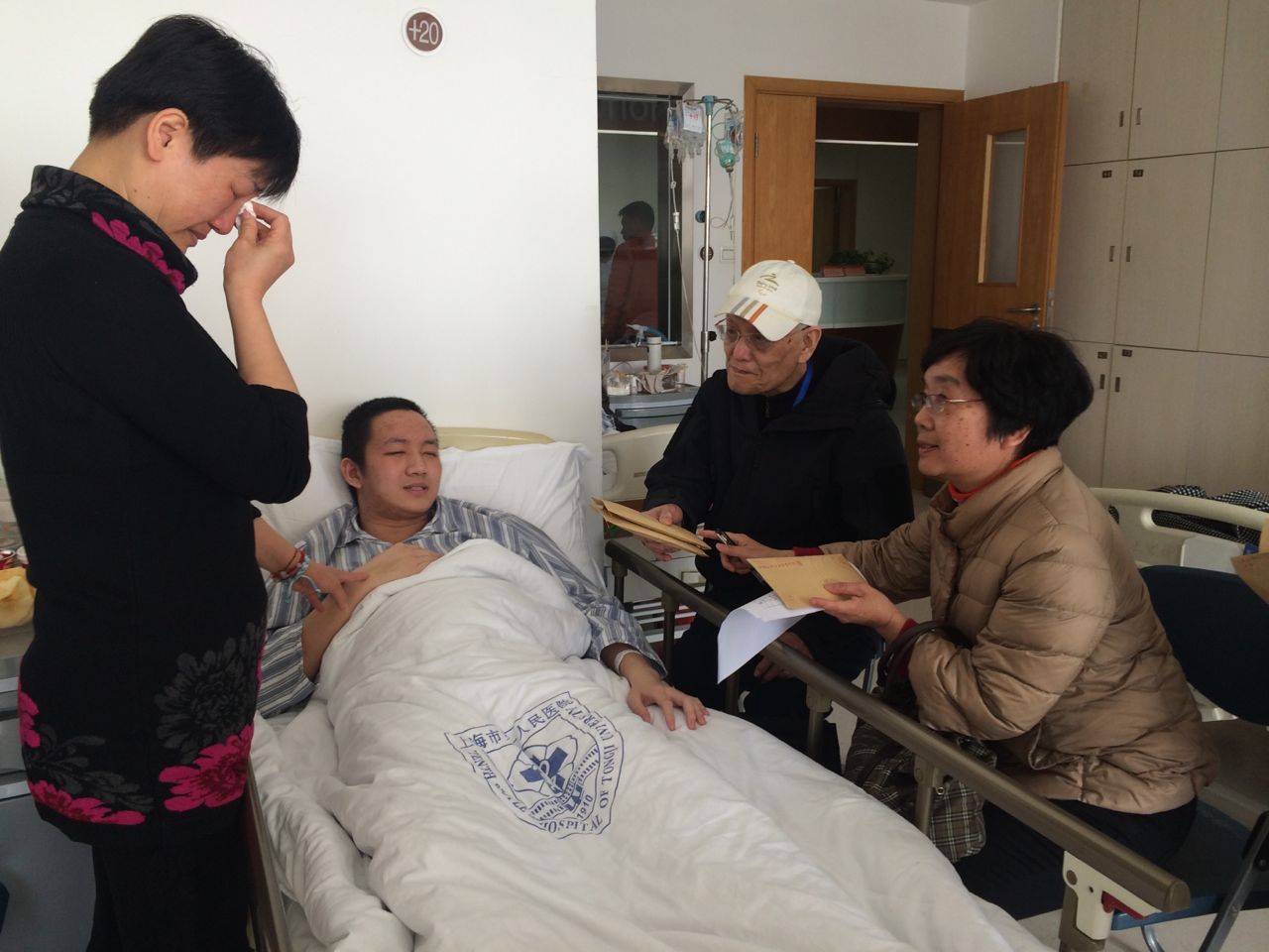 唐奕欣本人和父母含泪一再向冯老师表示感谢,感谢老同志和学校师生对他的关注和爱护。据悉,目前他已顺利完成肿瘤切除手术,随后将进行一系列的康复治疗。祝愿坚强的他能早日重回温暖的上戏大家园!(文、图:关工委 编辑:榕树)