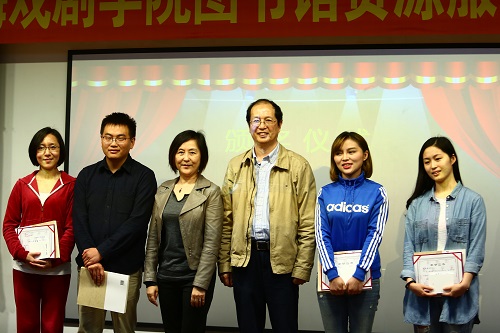 为了鼓励广大师生多走进图书馆,充分利用馆藏资源,开幕式上还对荣获图书馆2015年度“读者之星”的师生进行了表彰。根据图书馆管理系统近一年内读者的入馆次数和借阅量等相关统计,最终我校黄海、高荣、刘艳卉三位老师荣获了“教师借阅之星奖”,陈仕杰、陈昕闻、常慧娟、冀学荣四位同学荣获了“入馆达人奖”,周慧、王斐、胡慧慧、闫文惠四位同学荣获了“借阅达人”奖。获奖名单由戏曲学院副院长黄暾炜宣读,图书馆及部分院系领导为受表彰的师生颁发了荣誉证书和奖品。获奖教师代表高荣、获奖学生代表胡慧慧分别上台发言,他们从自己利用图书馆资源的经历讲起,向在场师生分享了自己的读书感悟,传达了阅读的正能量。