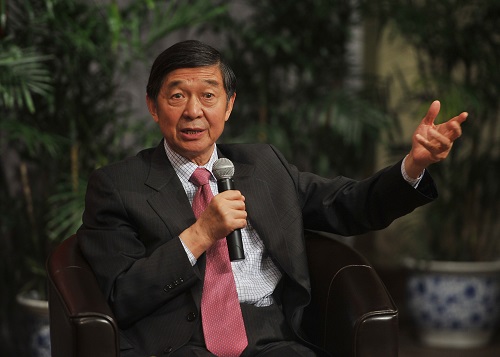 图为吴建民大使与学生互动交流