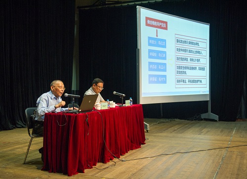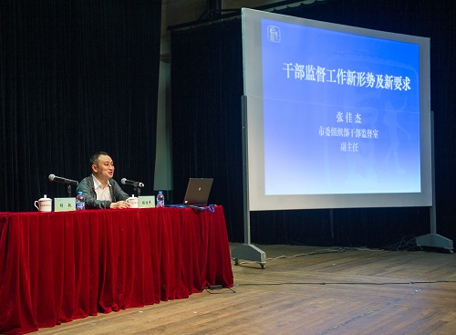 会议安排集体观摩了廉政警示片《梦断敛财路》,并邀请了市委组织部干部监察处张佳杰副主任、市委党校哲学教研室周东华教授、市委党校科研处处长周敬青教授分别做了题为《干部监督工作新形势及新要求》、《学习习近平总书记关于马克思主义世界观和方法论重要论述》、《学党章 守规矩 讲党性》的专题辅导报告,从多角度、多方面深入推动“两学一做“,强化学习意识,提高思想觉悟。专题报告后,与会者进行了分组讨论,围绕着报告中提到的问题,结合巡视整改的实际情况,从思想立场、制度建设、廉政建设等问题展开了热烈的讨论。