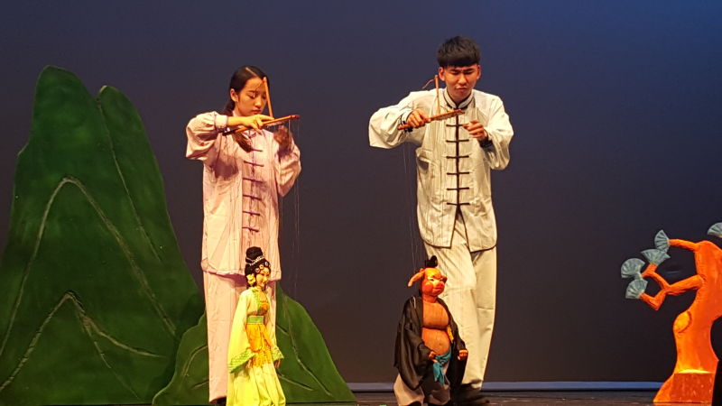 8月13日深夜,经过十几个小时的飞行,演出队伍顺利到达爱丁堡。第二天便立刻奔赴爱丁堡国际会议中心进行彩排。当地许多做志愿者的华人看过彩排后纷纷表示,他们对祖国优秀的传统艺术文化踏上世界舞台深感自豪,并且祝愿同学们正式演出圆满成功。第三天,演出正式开始,木偶专业学生表演的剧目主要有《三打白骨精》、《玉兰飘香》、《长绸舞》、《三个和尚》、《猪八戒背媳妇》、《魔巾》等。互动节目《车技》也从舞台走向了观众席,让观众们近距离感受了木偶的乐趣。这些节目形式多样,有杖头木偶、提线木偶、铁枝木偶等,来自世界各地的观众们大开眼界,一览中华木偶艺术的风采。