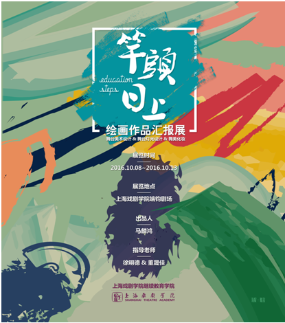 “竿头日上 - 绘画作品汇报展” 于2016年10月8日-14日在上海戏剧学院端钧剧场举行,此次展览集中展出了30余幅学生“素描”、“油画”等绘画作品。“竿头日上” - 出自《秉烛谈》,展览借此《谈》中的“竿头日上”,意为:“到了百丈竿子的顶端,也还是要继续深造”的喻意,向全校师生展示一年来的学习状态。