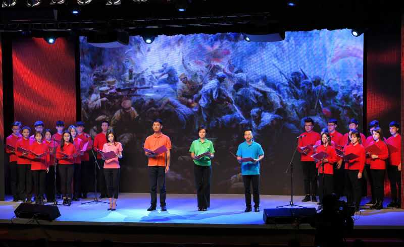 为积极响应演出,我校电影电视学院2016级播音与主持艺术专业的全体同学参与本次大会,作为上海戏剧学院学生代表于压轴朗诵节目《长征组歌》登台演出。