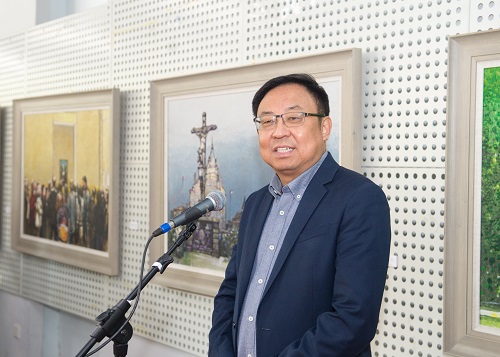 2016年11月2日上午十时,由上海戏剧学院老教授协会、舞美创新工作室、离退休工作处共同主办的“印象欧洲”——周本义教授油画展开幕式在端钧剧场举行。开幕仪式由上海戏剧学院舞台美术系主任伊天夫教授主持。
