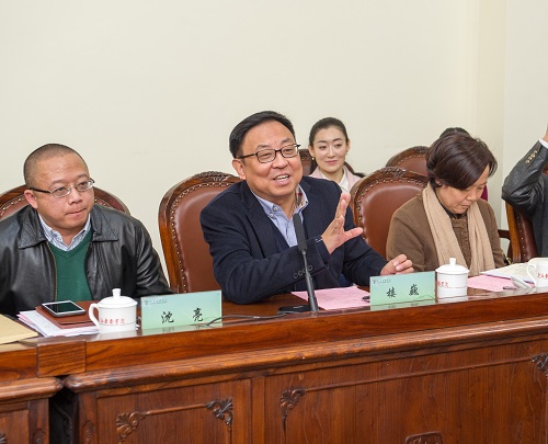 楼巍书记和王旭东书记分别介绍双方出席人员。首先楼书记介绍了我校的基本情况及校区建设布局,对我校的总体办学思路归纳总结了四个方面。一目标是“四个出”,即“出人才、出作品、出思想、出模式”;二是实现目标的“四个着力”,即“着力做好规划、着力改革、着力建设现代化、着力加强党的领导”;三是建设“四个板块”,即戏剧、戏曲、舞蹈、电影四大校区建设;四是改革要有的“四个重要思考方向”,即要从“解放、思想、改革、开放”四个重要维度来考虑。随后我校规划办主任吴爱丽代表学校就 “十三五”规划的具体思路进行发言。强调学校教育教学改革是我校“十三五规划”的重中之重,对我校招生改革、针对舞蹈及戏曲探索相对独立的二级学院办学模式的思考、打造一流本科艺术教育的想法以及改变教学方式让学生成为学习主人等方面进行详细介绍;二是针对我校科研较为薄弱的现状,提出若干举措;三是对未来五年的教学、创作演出方面创造条件、提供服务,通过对接五个方面达到目标要求;四是根据党委对学校“十三五”师资规划的要求,重新梳理师资情况,通过定岗定编,明确任务清单,真正实现绩效工资“三道门”的说法;五是实施大部制改革,实行1.5级的管理制度,整合资源,优化管理。接着教务处处长沈亮就我校提高人才培养方面的教学改革及举措进行发言。一是提出学校发展过程中,需要处理好传统优势专业和新专业的关系,不断创造条件培养爬坡式中青年师资,注重教师能力的提升是学校人才培养的重要方面;二是改变陈旧的教学方式、夯实具有我校特色的艺术人文通识类课程,将每门课程做扎实是教学改革的重要举措;三是提出教务处将建立教师教学档案及学生艺术档案,为师生建设好信息化平台,打好基础保障。王旭东书记在听取我校工作汇报后,表示收获很大,受到很大启发,非常感谢我校的热情接待,要求北舞主要与会人员向上戏学习。王书记提出北舞及上戏的属性及办学特点方面非常相似,希望两校今后能在思想及办学理念上常交流,在办学战略及人才培养等各方面多沟通,希望两所院校能够共同发展进步。