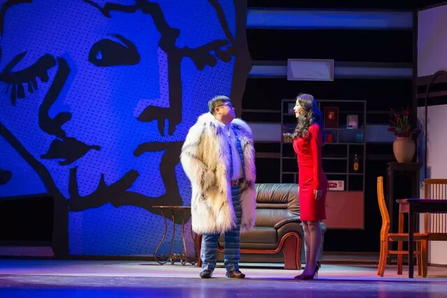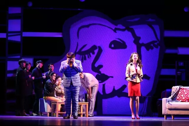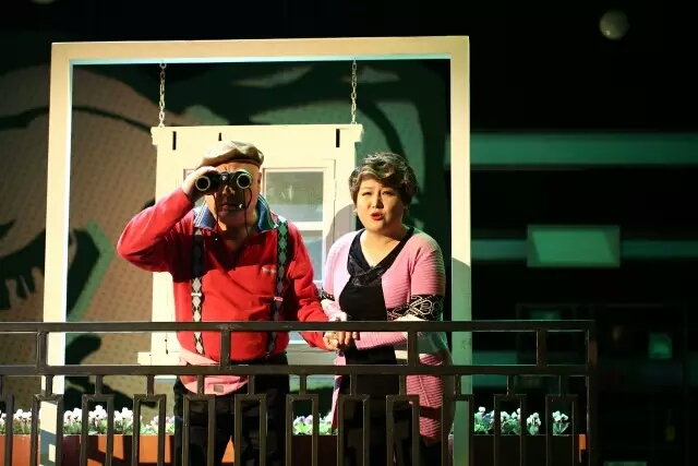 本剧由我校学生负责的舞美、服化、音乐等方面同样是构思精巧,亮点迭出。该剧的空间处理是一个难点,舞美设计将两家人的生活空间同时呈现在舞台上,既方便展现两家人同时进行的生活状态又节省了舞台迁景的时间,加快喜剧节奏。并以移动阳台装置构造出楼上楼下,楼内楼外的空间,同时放大了“阳台”这一巧合和误会密集的地点,增强了喜剧效果。服化设计结合喜剧要求,采用了一种贴近人物性格的夸张处理,以红、蓝、绿、黄、粉来象征剧中人物的个性特征,又以小男人围大力士围裙等反差设计增添喜剧效果。本剧的主题曲曲调轻快,配合由编剧管燕草填写的歌词,妙趣横生,生动演绎了上海青年小夫妻间的生活状态。