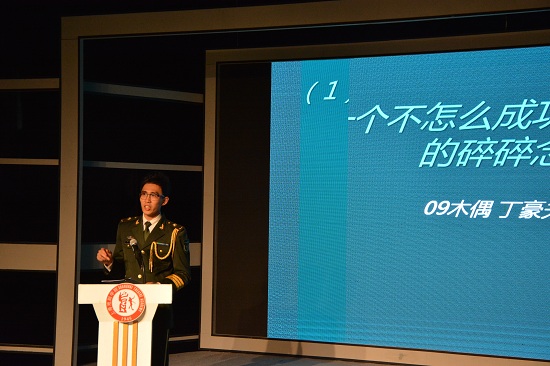 5月18日中午12时,随着一声清脆的上课铃声,蓄势已久的上戏第五期“学生讲堂”正式开讲。校党委副书记、纪委书记胡敏,学工部部长、招就办主任徐咏,团委主持工作副书记徐晶,后保处处长陈昌富莅临现场并聆听了演讲。本期学生讲堂的主讲者是两位现役军人与两位退伍老兵,他们都是从上戏走向军营的佼佼者。他们上台分享了各自最真实、最生动、最具上戏特色的军旅生活。