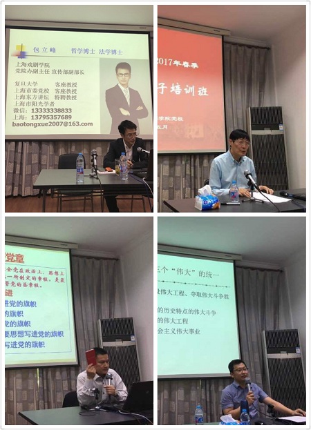 5月11日-21日,上海戏剧学院2017年度春季入党积极分子培训班在我校顺利举行。通过各院系学生党支部的选拔推优,全校共有90多名入党积极分子参加了本次党训班。开学典礼上,党训班班主任、学生党总支书记姚远,组织部曹颖老师向大家介绍了上戏学生党建工作基本情况、特色项目、发展流程,以及党训班的目的、意义、纪律、考核等相关要求,鼓舞入党积极分子们立足更高的起点,勤于学习、善于思考、勇于交流、敢于探索,争做优秀学员。