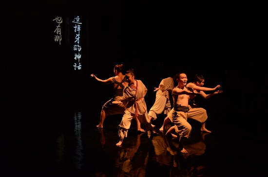 此次演出作品《射日·奔月》,是根据华裔作家高行健的《山海经传》和中国小说家鲁迅的《故事新编》改编,一个是对戏剧的“破新立旧”,对乡愁的深究;一个是至上的英雄被困于日常琐碎事,精神丰碑和肉体不堪的对立。而这一切,借着神话的把戏,披着形式的外衣,字字句句一举一动,都在说人性。在剧中,穿插了《一块红布》、《神话》这样的摇滚音乐,舞台背景是简单的一方圆台,配合着LED的灯光,奇异炫酷。演员通过工作坊的肢体训练,在新型舞台科技的革命下,饰演出别出心裁的传奇与现代交织的东方神话。