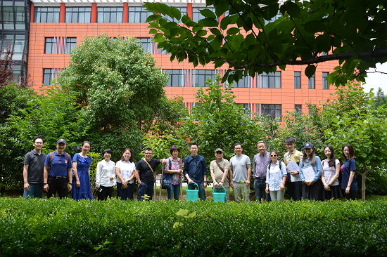 6月29日下午,在党的96岁生日到来之际,电影电视学院党支部开展了“十年树木·百年树人”为主题的党日活动。电影电视学院党支部书记魏东晓、副院长詹新、党支部副书记费泳以及学院10余名党员老师一起参加了为毕业树浇水、除草的隆重仪式。