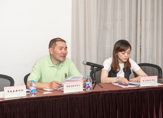 6月29日上午,上海市教卫工作党委、上海市教委在我校佛西楼二楼会议室召开“向大师致敬——大师系列校园剧”新闻通气会。上海市教卫工作党委宣传处有关领导,上海交通大学、东华大学、上海师范大学、上海戏剧学院、上海音乐学院、上海立信会计金融学院等高校宣传部负责人,以及人民日报、光明日报、解放日报、文汇报、新民晚报等中央和地方的20多家媒体代表出席了本次新闻通气会。会议由上海教育新闻宣传中心常务副主任唐洪平主持。