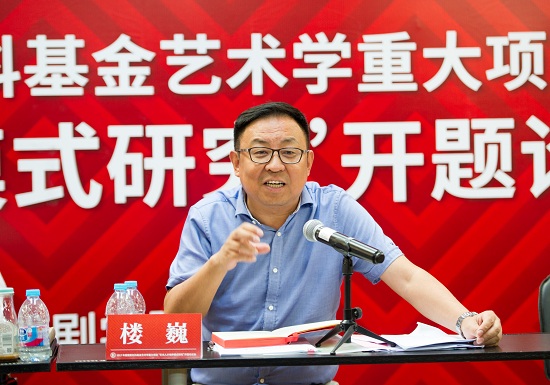 上海戏剧学院党委书记楼巍对开题论证会做了总结性发言——他也是本次重大项目的一位子课题负责人。他主张我们要从封闭走向开放,不能封闭在我们自己的圈子里面,目前课题已经集聚了很多的专家和教授,还有外面来的专家,但是还不够,其实社会上还有很多的想法很多的资源。也不要指望这个课题做完了就穷尽了我们今天的问题,还要继续开拓,一个好的东西要让人有思考,让人有借鉴,可以长期地延续下去。