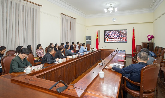 学校党院办、宣传部、国际交流中心、工会、学工部、团委、招就办等部门组织教师集中观看会议直播。学校离退休老干部,也十分关心关注党的十九大召开,早早的来到学校老干部活动室,全程收看了十九大开幕式。观看开幕式的老师都情绪振奋,纷纷表示要在今后的学习中进一步弘扬顽强拼搏、敢于攀登的精神,坚定信仰,把满腔热情转化为扎实的工作,把自身发展与国家的前途和命运紧密结合在一起,以更加昂扬向上的精神状态和奋发有为的工作作风投身于中国特色社会主义文化建设中。