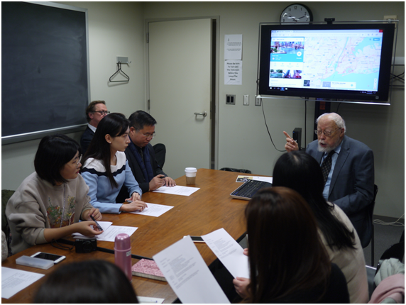 11月15日上午,访学团一行人抵达纽约城市大学大博院并受到Marvin教授的热烈欢迎,他详细地讲述了纽约城的历史、纽约城市大学的建立以及纽约百老汇的演剧特点。下午,Peter教授接待了访学团一行,并对大博院的学院概况、专业设置、办学现状及博士生的管理与培养进行介绍。厉震林老师对其学院概况表示了肯定并简单地与我校研究生的办学情况进行对比,希望两个院校之间能继续相互交流学习,友谊长青。