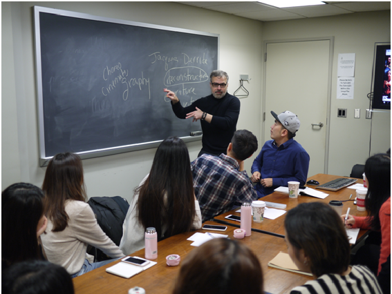 11月17日,电影理论专业的David教授与我们进行开放式的学术讨论。同学们向David教授提问了美国电影的现状、美国电影理论家以及好莱坞电影的发展等问题,并深入讨论了这些问题,从而对美国当代电影与中美电影异同有了更深层次的了解。厉震林教授就当代电影与高科技的关系、电影理论和表演训练等问题与David教授进行学术交流。11月17日晚上,访学团一行人自发组织前往百老汇CORT剧院自费观看了《蝴蝶君》的演出。演出结束后,编剧黄哲伦教授与上戏学生举行了座谈会,厉震林教授祝贺他演出成功。