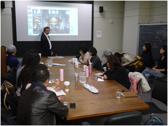 11月16日,负责管理大博院Segal剧院的Frank教授介绍了剧院创立至今的历史、曾上演过的剧目以及和其他各国戏剧家合作的项目等。同时他还邀请了来自世界各地的大博院访问学者与上戏同学们进行座谈,同学们结合自己专业内容进行提问、讨论,课堂气氛热烈,同学们受益匪浅。