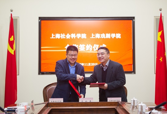 2017年11月29日上午,上海戏剧学院与上海社会科学院合作签约仪式在我校佛西楼会议室举行。本次合作主要是为了切实贯彻十九大精神,落实全国高校思想政治工作会议精神,加快上海戏剧学院马克思主义学院建设,进一步提升上海戏剧学院马克思主义理论学科建设及其发展水平。上海社会科学院党委书记于信汇,上海社会科学院中国马克思主义研究所所长方松华,上海戏剧学院党委书记楼巍,上海戏剧学院党委副书记、院长黄昌勇,上海社会科学院及我校相关职能部门负责人出席仪式。上海戏剧学院党委副书记胡敏主持仪式。